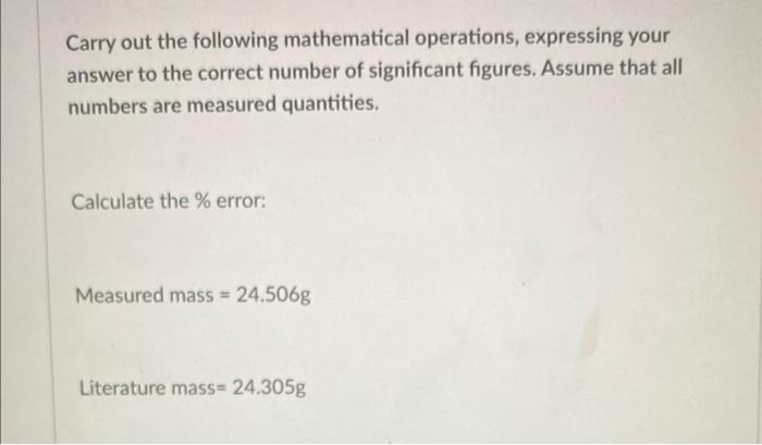 673. 52 has 5 significant figures (6, 3, 7, 5 and 2). Which of the following measurements has three significant figures? A)0. 005 m b)510 m c)0. 510 m d)0. 051 m e)5100 m. In an atom, the nucleus contains a) an equal number of protons and electrons. Which of the following occurs in this system? A)water flows equally in both directions b)there is a net flow of water from the 4% starch. Significant figures calculator to add, subtract, multiply and divide significant figures online. Enter numbers and calculate answers rounding to significant digits or sig figs. D = 2r, where diameter is twice the length of the radius.