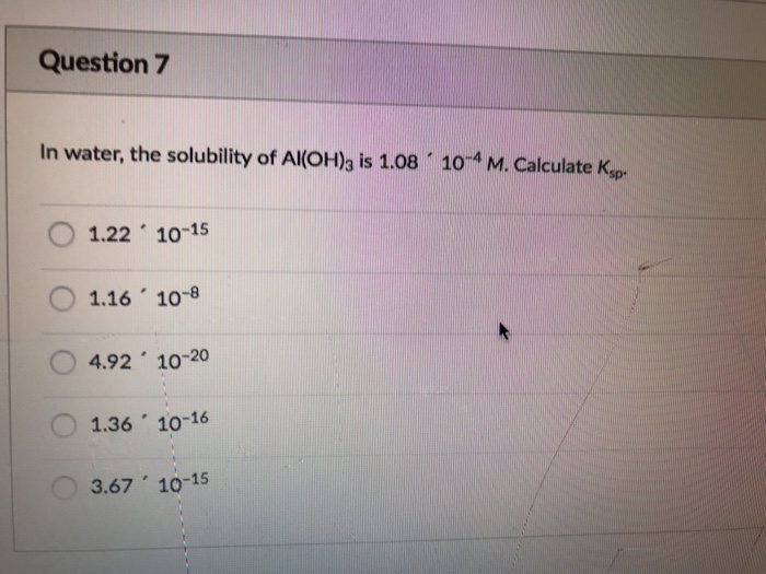 Solved: In Water, The Solubility Of Al(OH)_3 Is 1.08 ' 10^... | Chegg.com